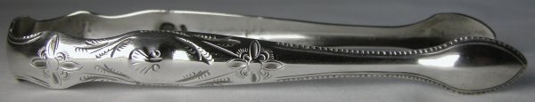 Jonathan Perkins I registered his first mark on 23rd April 1772 as a small-worker. He then went on to register a number of other marks up to 6th November 1789, many as a buckle-maker. He registered a mark with his son on 5th August 1795 and then another on his own on 29th August 1800. We know that he made sugar tongs, as his partnership with his son also produced sugar tongs. James Perry was also working from 1st March 1763 until at least 18th December 1777, but he was registered as a hilt-maker so is unlikely to have been making sugar tongs. The marks of the two makers are very similar. Jonathan Perkins’ mark is not registered as having a pellet however, there are two pairs of tongs marked with JP with a pellet. His tongs are superb examples of early sugar tongs and are all dated between 1775 and 1784. Click here to see tongs by Jonathan & Jonathan Perkins. Click on a picture to see more detail |