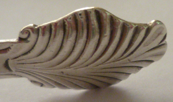 These are a gorgeous pair of cast tongs, beautifully shaped and with highly unusual shaped bowls. Best guess would date them at around 1775.