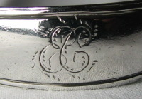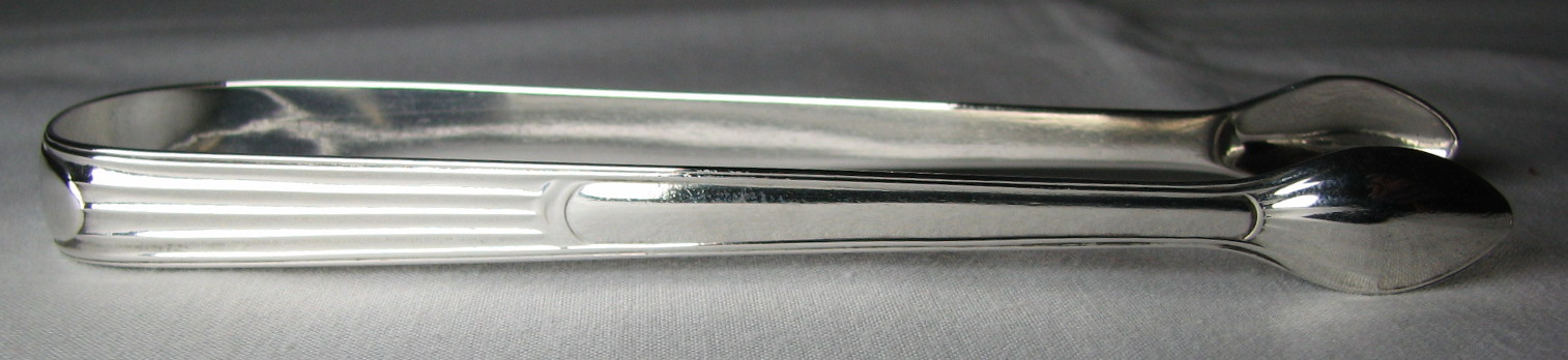 This pair of sugar tongs are dated 1794/95 and are a good example of the fluted style tongs that is a feature of the Batemans. This particular style was made by all of the Batemans from Peter & Jonathan onwards. A Fascinating feature of these style tongs is that they are always marked underneath the bow. This pair has a fancy engraved set of initials "EC". Click on any picture to enlarge |