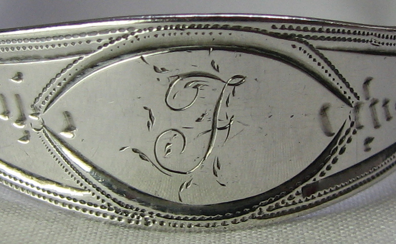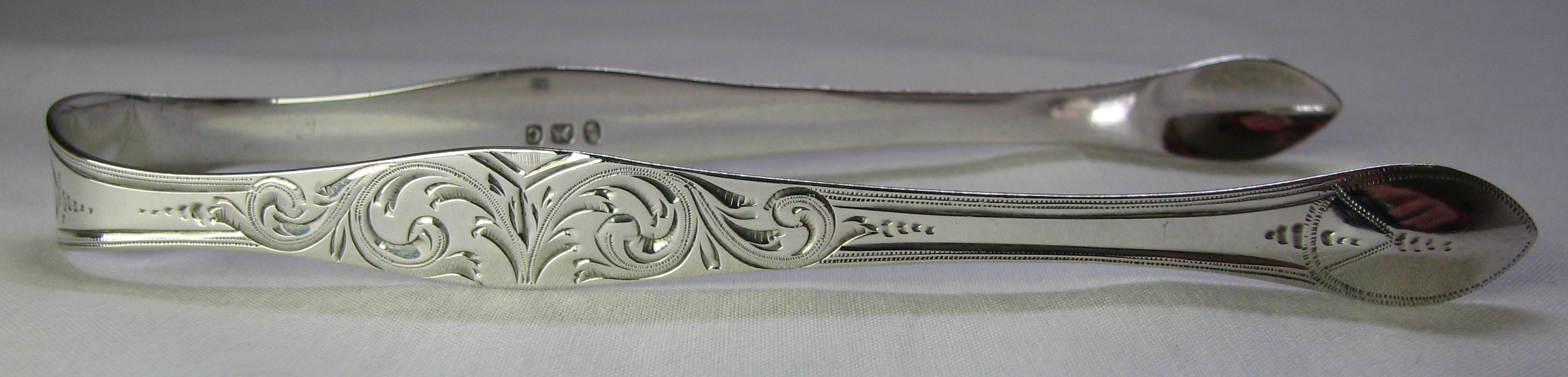 This pair of sugar tongs are dated 1798/99 and are a good example of the flared, bright cut style of sugar tongs. They are a very typical Bateman style with a lovely swirling engraved pattern.
