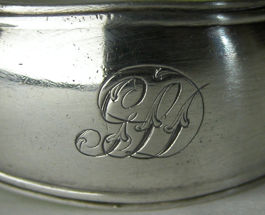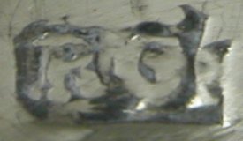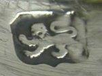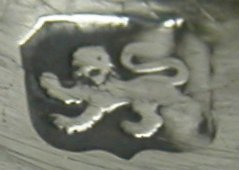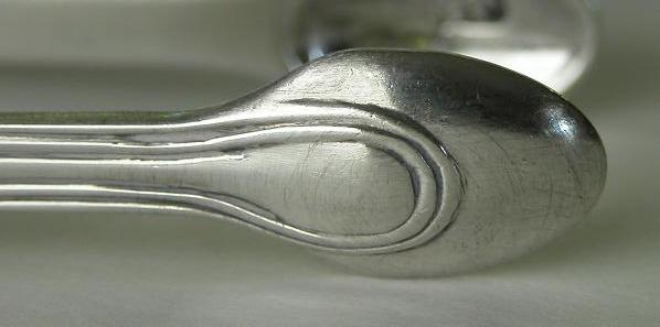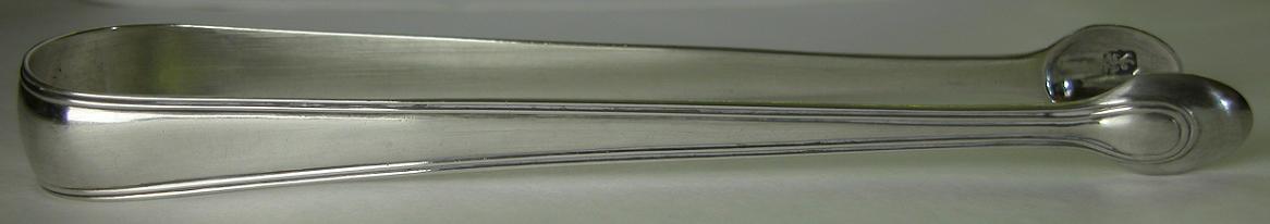 The first sugar tongs we show here are marked in the bowls with the Lion Passant and maker's mark only. They are a very simple style, just a double thread edge, ending at the tops of the bowls.