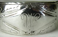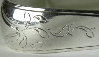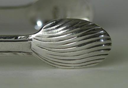 These are a delightful pair of feather edge tongs with a lovely engraved trailing flower pattern engraved to the shoulder. The cartouche on the bow is an integral part of the pattern.