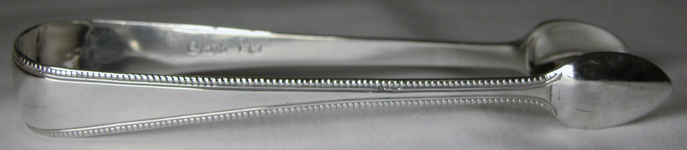 These tongs are plain with a beaded and thread edge. They are dated 1807/08.
