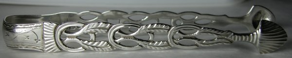Simeon Coley I entered his first mark on 27th September 1761 as a small-worker. He also appears as a buckle-maker and entered several marks as a buckle-maker. Simeon Coley I was Hannah Northcote’s father. These tongs are a pair of cast silver sugar tongs. They have the maker’s mark in an oval, without a pellet which means they must be dated after 4th August 1780, which was when this mark was registered. Click on any picture to enlarge |
