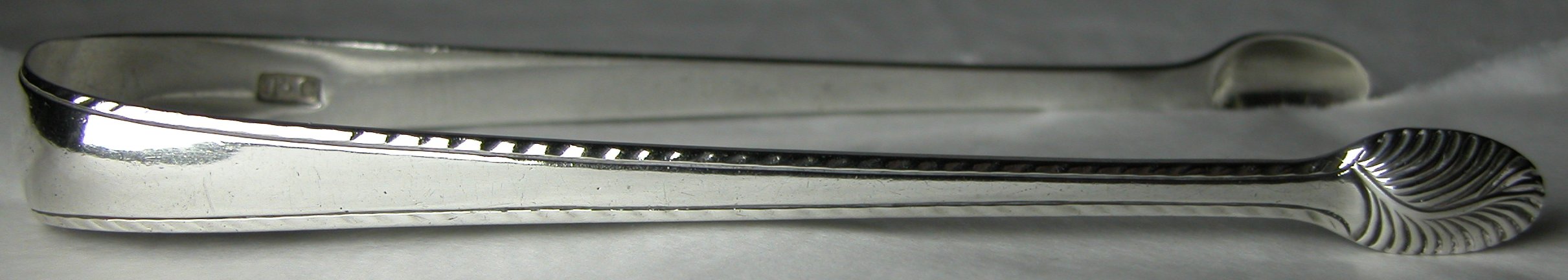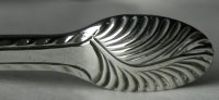 This is a pair of thread and feather edge bright cut tongs. As with each of the Thomas Chawner tongs, they are marked with the Lion Passant and maker's mark only. Notice the heavily engraved bowls. This is a feature of all Thomas Chawner sugar tongs. Click on any picture to enlarge |
