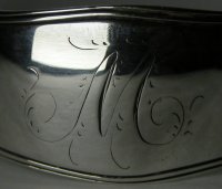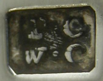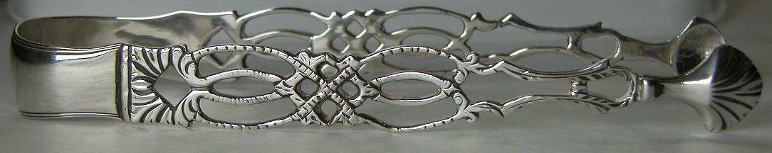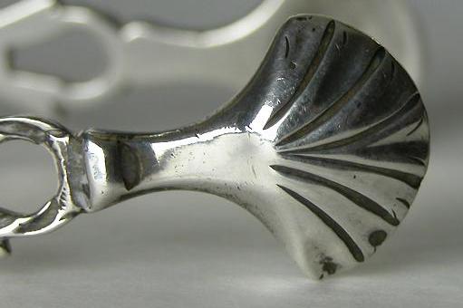 Thomas & William Chawner were the sons of John Chawner and Anne Chaloner. Thomas was born in 1734. He was apprenticed to Ebenezer Coker on 4th December 1754, was free 13th January 1762, and made livery in December 1771. Thomas & William were in partnership from 1759. The date of Thomas’s first mark is 15th October 1773 but is believed to have been working before this, probably from the date of his freedom in 1762. Thomas died between 1802 and 1811. The maker’s mark on these cast silver sugar tongs is recorded as (probably) Thomas & William Chawner, (Grimwade’s 3816). Sadly they are repaired although the repairs are excellent, the second one being so good as to be extremely difficult to discern. Notice the maker's mark is different to the other two pairs of tongs. Click on any picture to enlarge |