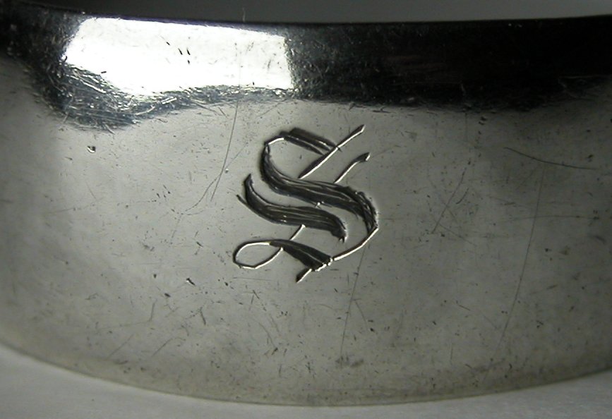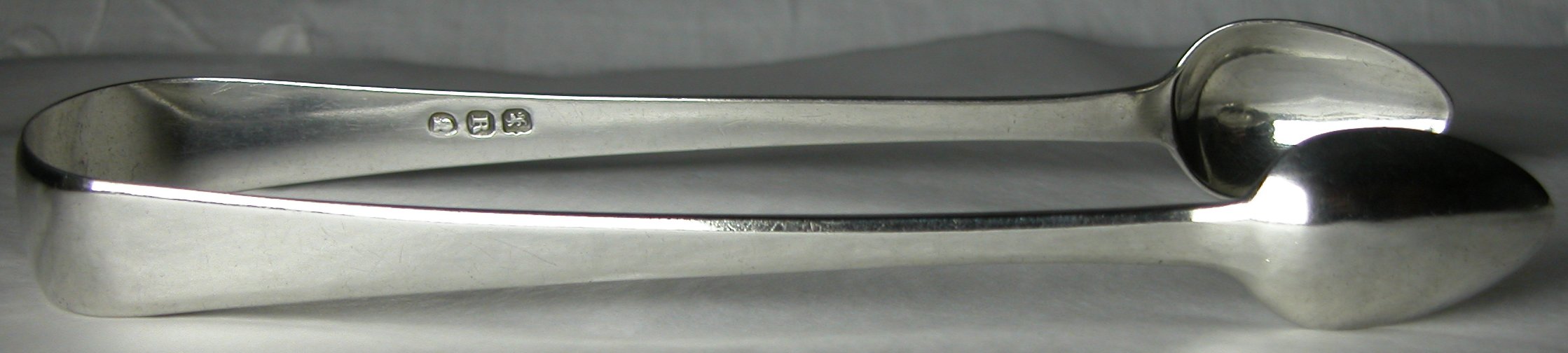 This is a pair of plain tongs, normal for the date. The monogram is probably a later addition.