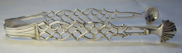 plate-workers, which ties in with them making salvers and waiters. click here to see tongs by Richard Mills. Click on a picture for more details |