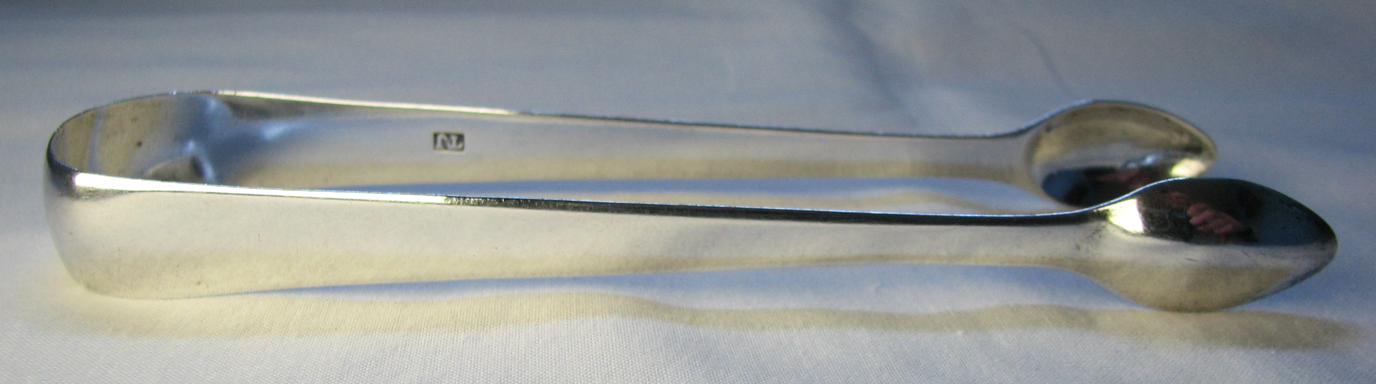 This is a plain "Old English" style pair of tongs. They are dated 1806/07 and the pellet can clearly be seen on the maker's mark.