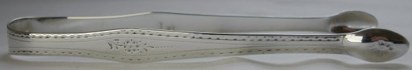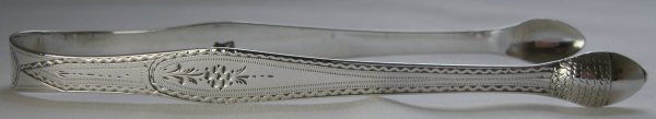 Thomas Liddiard only registered one mark, on 3rd March 1770. Heal records him as a goldsmith and watchmaker and he is recorded as a silversmith when his sons enter St. Paul’s school in 1794. His eldest son was apprenticed to Thomas Daniel, which is another indication of a connection to the silversmith’s trade. These two pairs of tongs are both over-struck with his mark and they are both standard Hester Bateman style. It looks highly likely that he will have bought these from Hester Bateman and overstruck his own mark.
