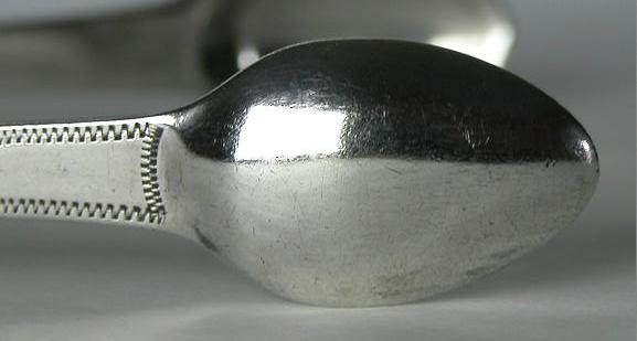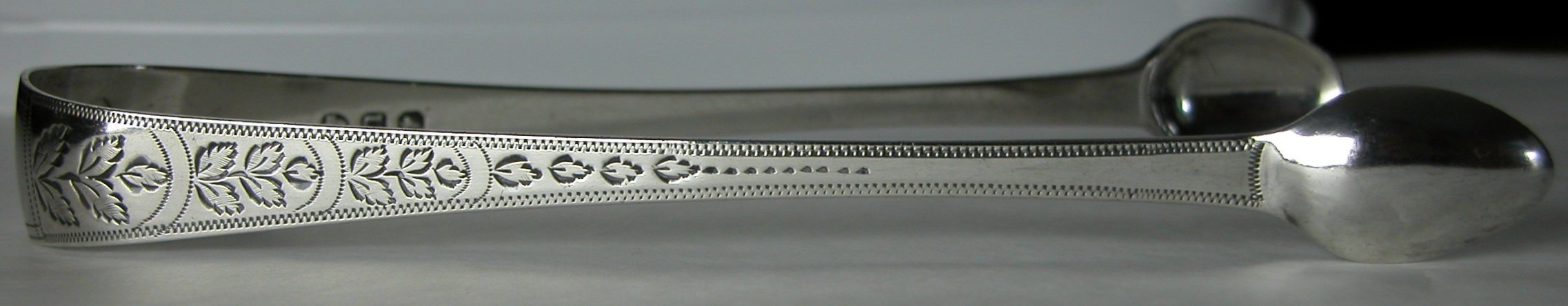 Thomas Richards entered his mark on 23rd May 1812 as a plate-worker. The attribution of these tongs to Thomas Richards may not be correct as there were several makers with the mark "TR" registered at the same time. These are bright cut tongs, dated 1815 with a plain bowl. Click on any picture to enlarge |
