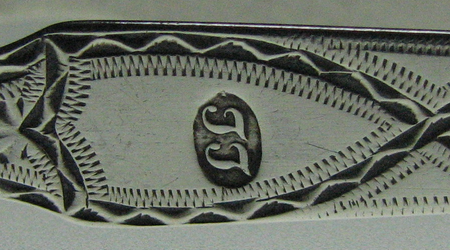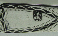 they have an engraved monogram that is cut diagonally on the bow - this is