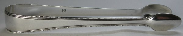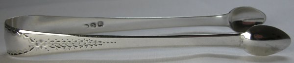 Jonathan Hayne was apprenticed to Thomas Wallis II on 1st January 1796. They registered a mark together on 22nd February 1810. They stayed together until Jonathan Hayne registered a mark alone on 3rd July 1821. Their work together therefore lasted over eleven years. The style of their tongs is typified by having bright cut engraving to the top half of the arms only. This style lasted through their whole time together. They did occasionally make tongs that were bright cut all over, plain and even with a fine thread and beaded edge. Towards the later part of their career, the bowls tended to get larger which was in keeping with other makers of the period. Click here to see tongs by Thomas Wallis II Click here to see tongs by Jonathan Hayne Click on a picture for more details |