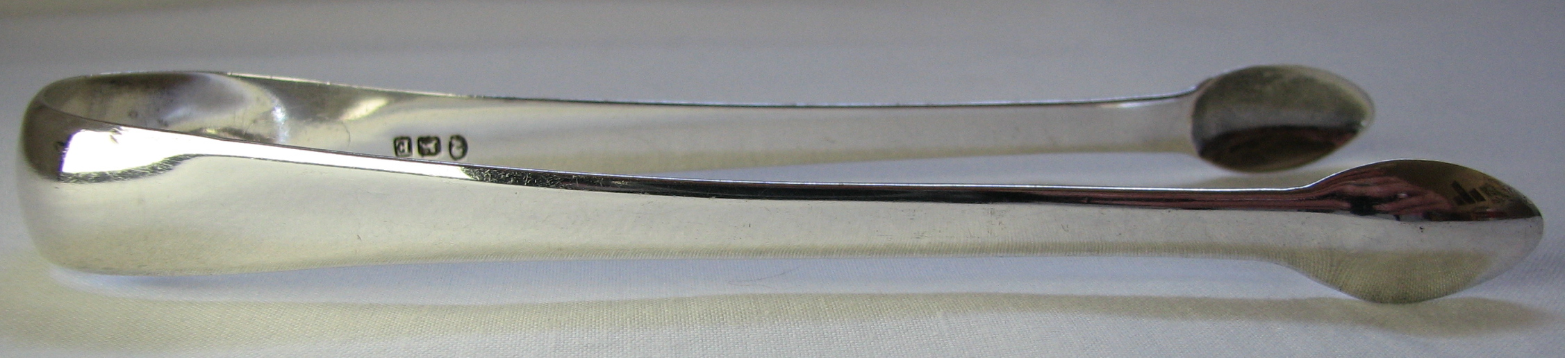 These tongs are completely plain, with a concave bow. The interesting feature is that they are hallmarked 1800/01 which means that they must have been either made by William Edwards (a small-worker) or William Eaton I (a buckle-maker). Click on any picture to enlarge |