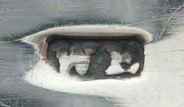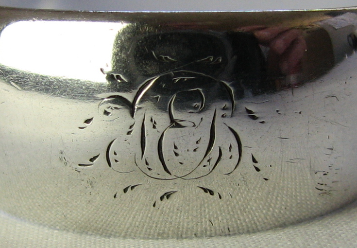 These tongs are also completely plain, but this time do not have a concave bow. They have an elaborately engraved monogram that appears to be "TEB". They are dated 1804 (before the duty mark was clipped in October 1804). Click on any picture to enlarge |