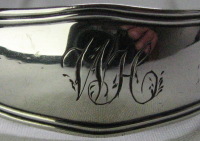This particular pair of silver sugar tongs is unusual. They are dated 1797 and are of Fiddle, thread & shell pattern. As Eley & Fearn registered their first mark together on 5th January 1797, these tongs must be dated between then and 29th May 1797. This pattern did not become widely used until some 10 - 15 years later. Notice that the fiddle shape is more curvy than with later tongs. They are also quite narrow and long, coming in at 6 inches long. The hallmark is also a little unusual in that it was not punched with a single stub. The Duty mark is a little offset from the Lion Passant and Date letter which ere apparently punched from one stub with the duty mark struck separately. The tongs are in excellent condition and weigh 43.8 grams.