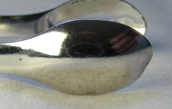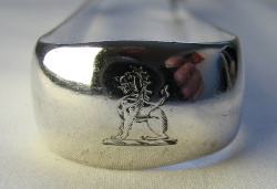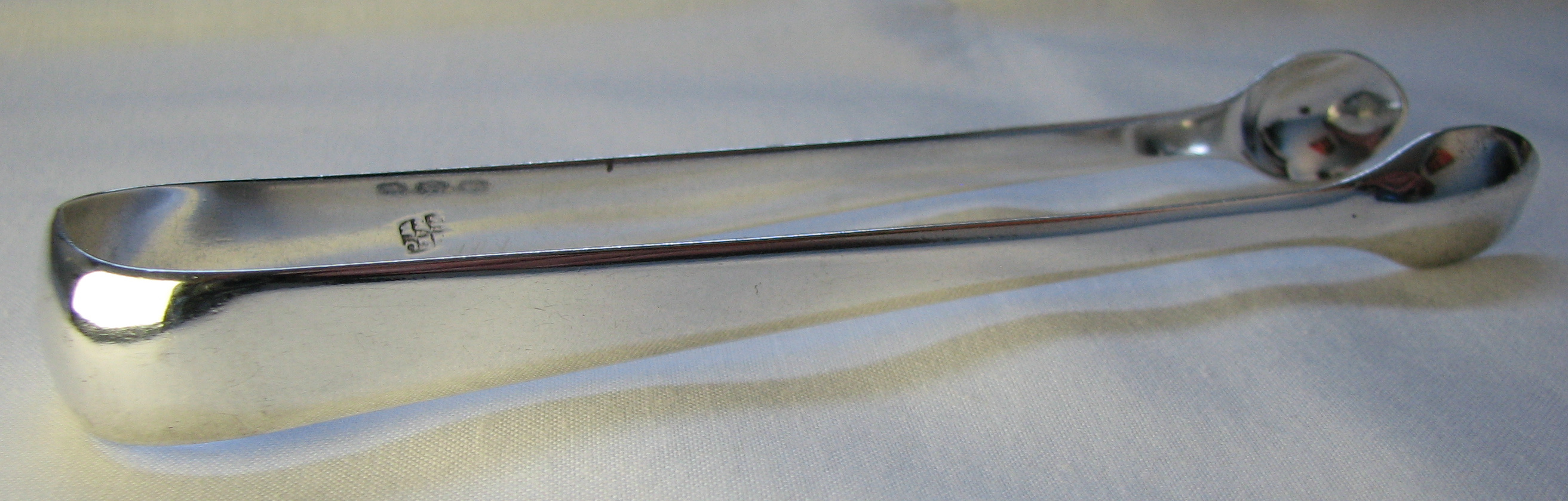 This pair of tongs is plain, Old English style, with a squared and concave bow. They have a delightful crest of a lion, Sadly the bowls are very slightly batterered. These tongs are dated 1811/12