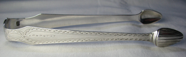 William Harrison I had been apprenticed to Joseph Steward and registered his first mark as a small-worker on 18th July 1758. He registerd a second mark in 1767, He appeared as a buckle-maker in the parliamentary list of 1773, and registered a mark as a buckle-maker in 1781. His tongs are of lovely early designs and styles. I have dated them in what I believe to be the approximate order from their styles. These dates of course could be wrong, but seem reasonable to me. Click on a picture for more details |