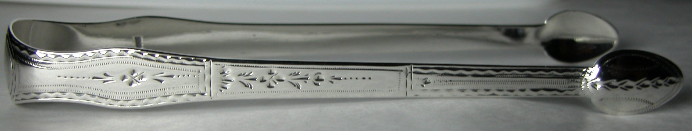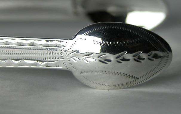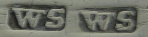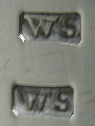 The maker's mark "WS" is very difficult to attribute as there were so many makers with these initials operating at this time. I have attributed these tongs to William Stroud as being the most likely maker. This is a guess - at best. William Stroud entered his first mark on 7th July 1788 as a plate-worker. William Stroud had been apprenticed to John Wirgman who we know made sugar tongs. His second mark was not entered until 9th March 1821, some 33 years later. An interesting observation about this maker is that his maker's marks are very often struck twice. Two examples are shown below. Click on any picture to enlarge |