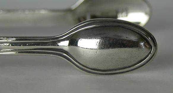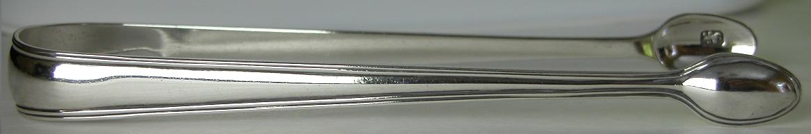 These tongs are completely plain but have a double thread edge which runs right around the tongs, including around the bowls. They are probably dated c1780.