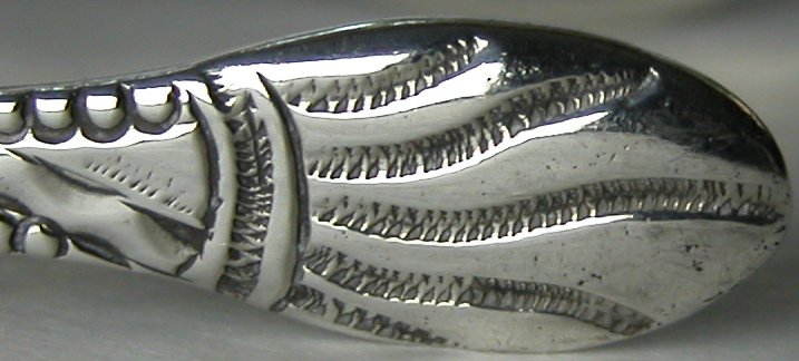 These tongs are a beautiful example of early tongs made in three parts. The arms can very clearly been seen as having been made separately to the bow. They have a delightful engraved pattern to them. I would suggest that they date between 1773 and 1775. Click on any picture to enlarge |