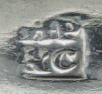 This particular mark was used between 1801 and 1804. The names were John Hampston, John Prince, Robert Cattle & George Cattle. The four traded together from early 1796 to 1804 when John Hampston retired. During this time they registered several marks, this particular one being the latest, dated sometime between 1801 and 1804. These tongs are very ordinary fiddle pattern as are most tongs seen from York at this period. Although the marks are rubbed, they are still clearly identifiable. Click here to see tongs by Hampston & Prince Click on any picture to enlarge |