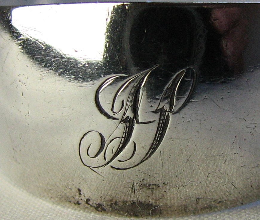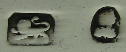 These tongs are a very plain pair of tongs, monogrammed with what looks like "IS". They The Lion is one that was used between 1829 and 1859 and the duty mark 1823 to 1839. This particular maker's mark was in use between 1835 and 1846. Taking all of those clues together dates the tongs to between 1835 and 1839. Click on any picture to enlarge |